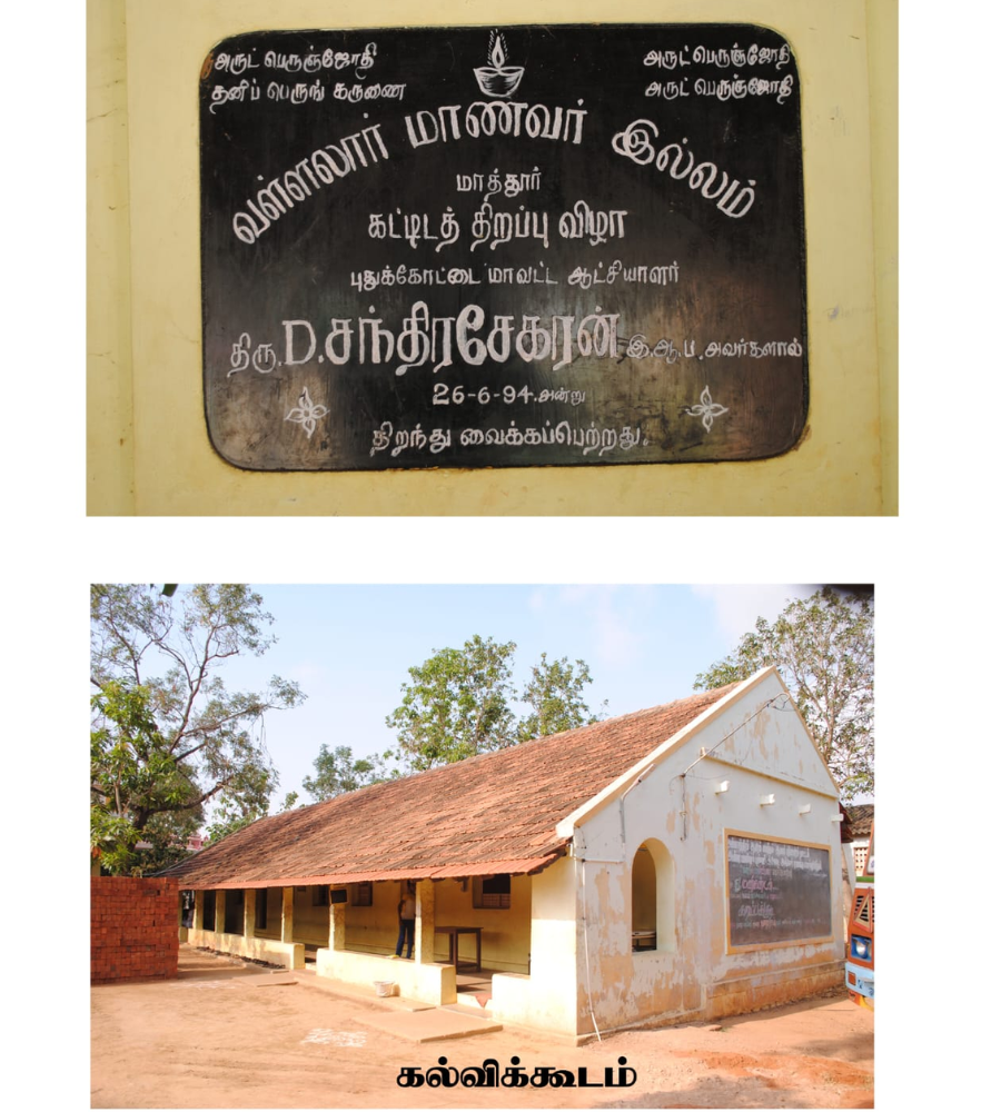 Building Inaugurator: Founder of Vallalar Students’ Home, Uyir-Uravu Gnana Guru Thirumigu. Sankarayya, B.A. (Chairperson, Vallalar Charitable Trust)