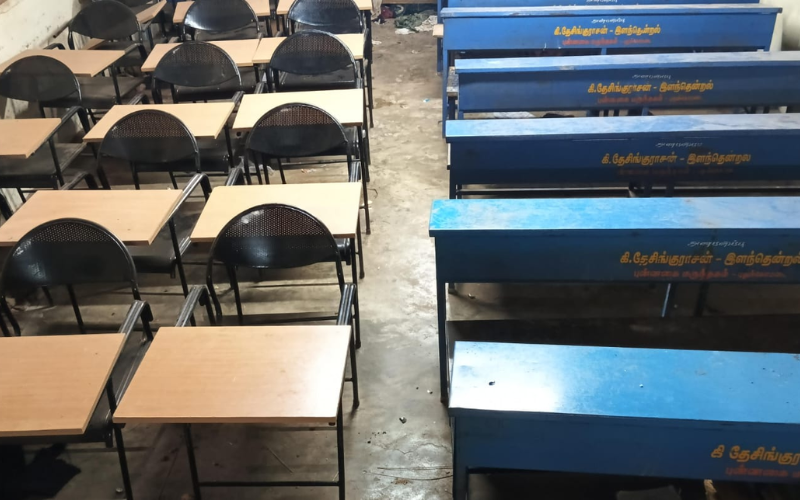 The compound wall around our school premises was constructed and inaugurated with the support of industrialist Mr. S. Ramachandran (Muthupattinam), Bakery Maharaj Mr. Arun (Pudukkottai), the ESS VEE Foundation, and several other donors, with the primary goal of ensuring the safety of the school students.